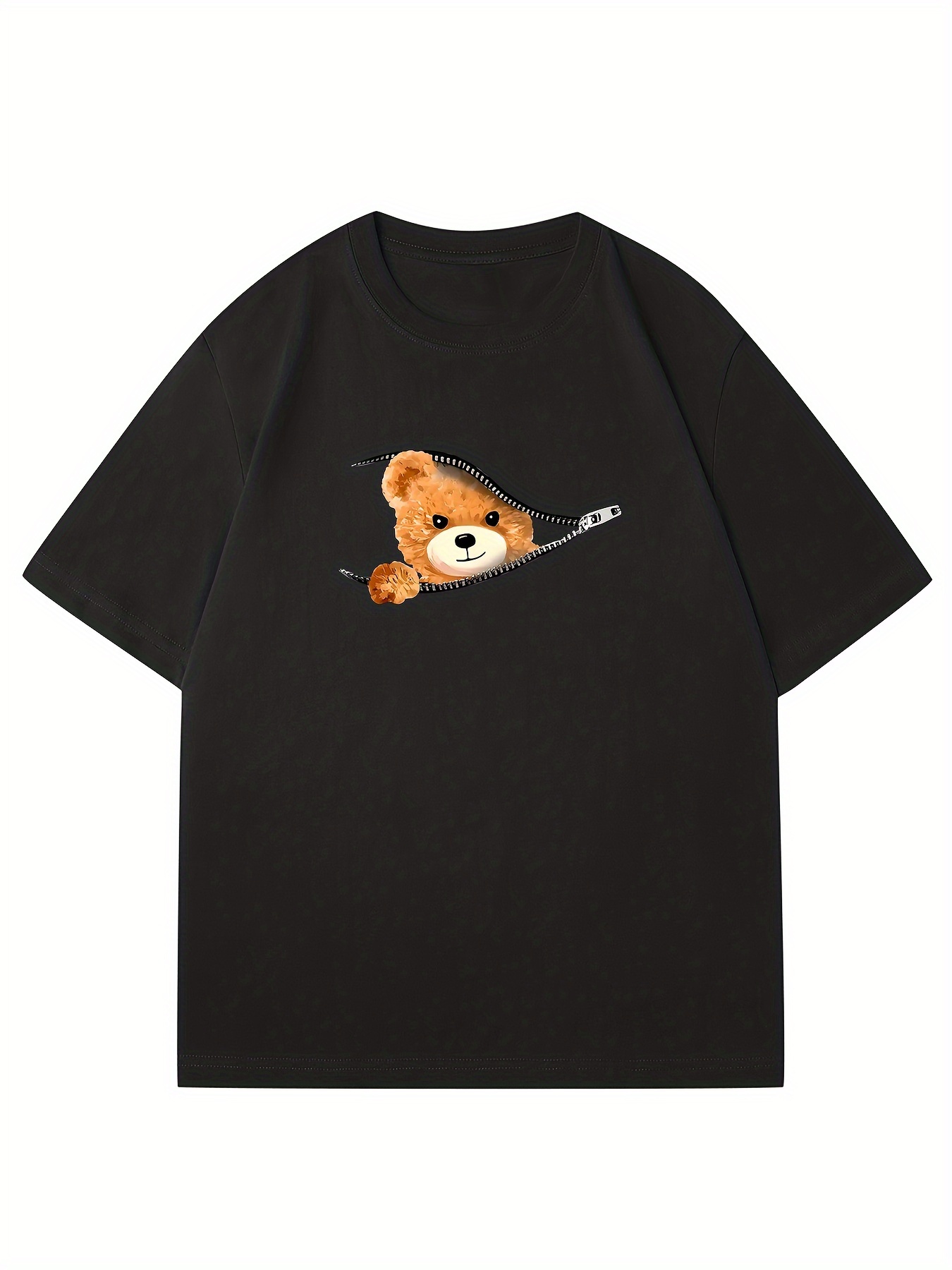 100% cotton men’s summer loose fitting casual Stylish Bear Pattern print round neck short sleeved T-shirt top