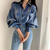2022 Women’s Fashion Gradient Color Shirts: Stylish Bright Blouses with Elegant Lapel Buttons, Casual Puff Sleeves, and Oversize Fit.