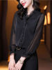 Elegant Women Chiffon Shirt Korean Blouse Office Lace Mesh Long Sleeve Ruffles V NeckTops Casual Vintage Pullovers Blusas 2022