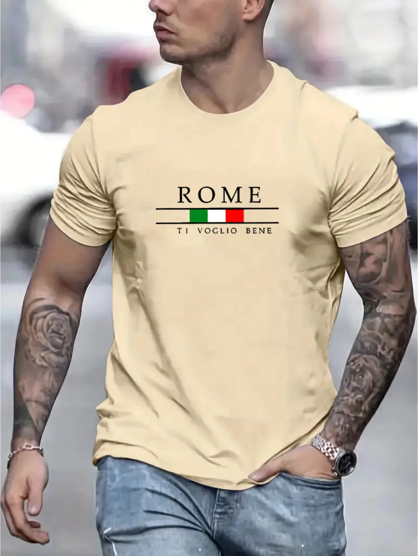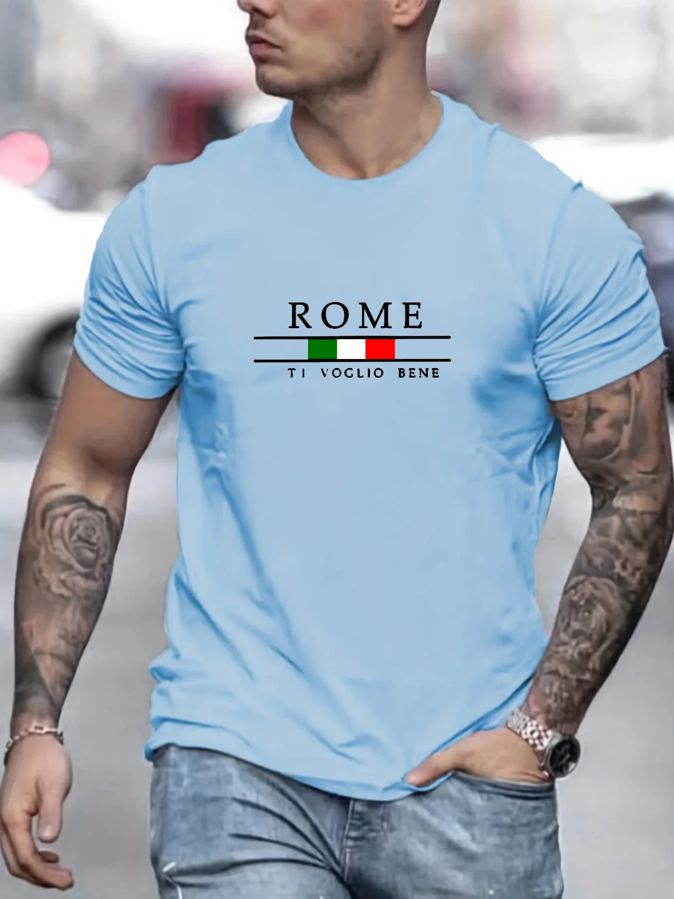 Men’s 100% Cotton Summer Loose Large Roman Alphabet Pattern Print Casual Comfortable Round Neck Short Sleeve T-shirt Top
