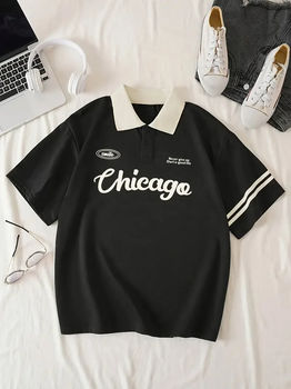 New Men’s Chicago Print Loose Polo Shirt Fashion Short Sleeve Lapel Sports T-shirt Men Women Activewear Oversized Unisex Tops