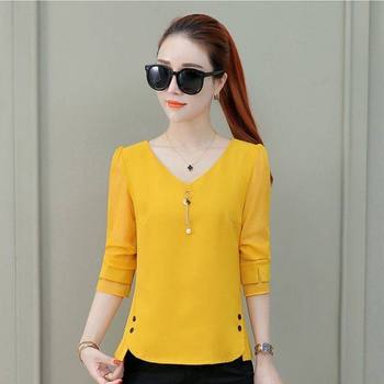 Women Spring Autumn Style Chiffon Blouses Shirts Lady Casual Long Sleeve V-Neck Blusas Tops DF1963