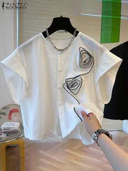 ZANZEA Women Short Sleeve Blouse Speacial Three-D Flowers Blusas 2024 Summer Round Neck Shirt Casual Loose Colorblock Tops Femme